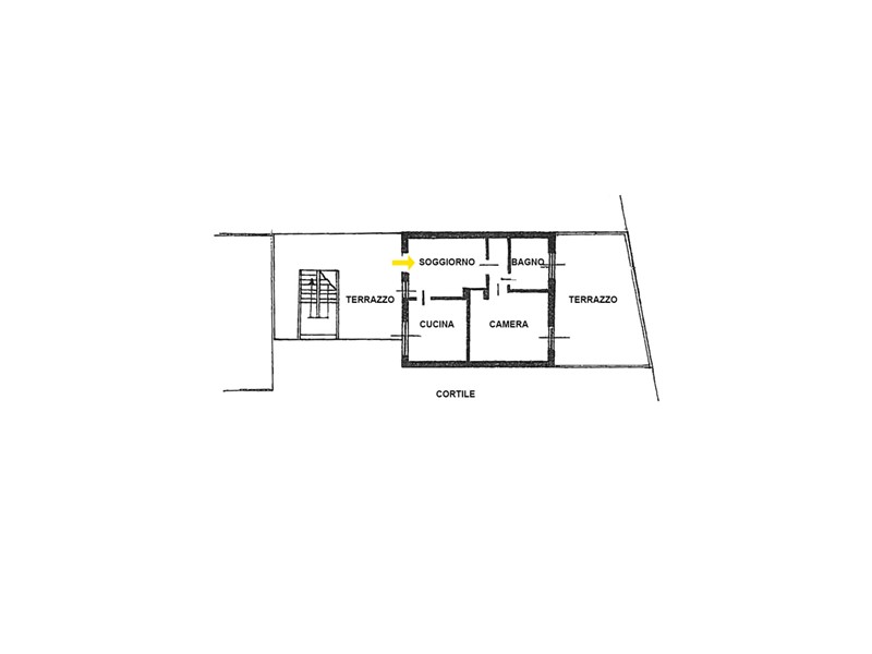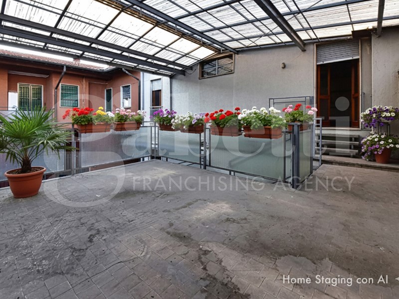 ARCORE/CENTRO: BILOCALE (di circa 95 mq) composto da ingresso living sul soggiorno (con antistante terrazzo coperto di ca 30 mq), cucina abitabile, disimpegno, bagno, camera matrimoniale con terrazzo di ca 30 mq. La soluzione è da ristrutturare.