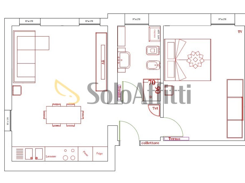 L’immobile è così composto: ingresso, soggiorno con cucina a vista, camera matrimoniale e bagno.