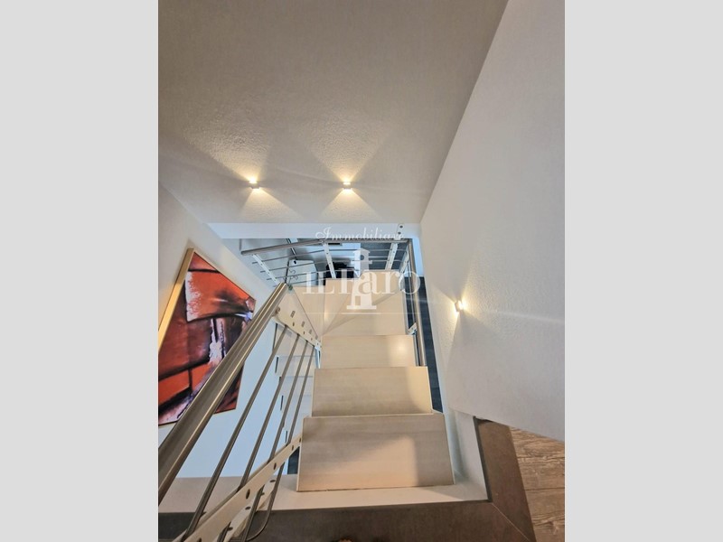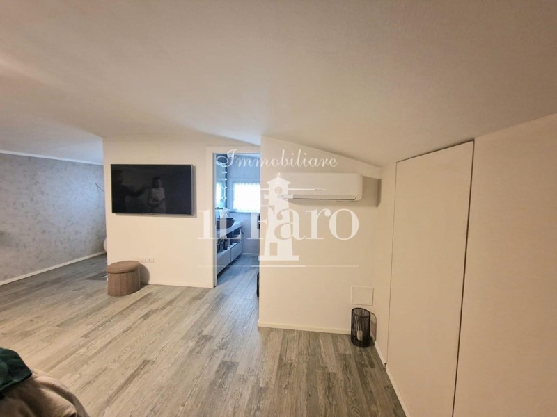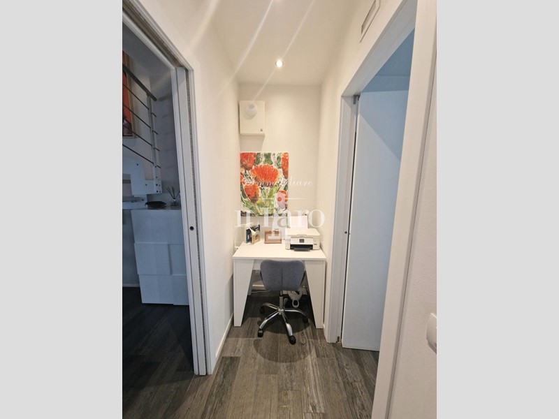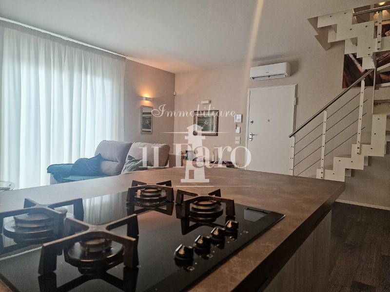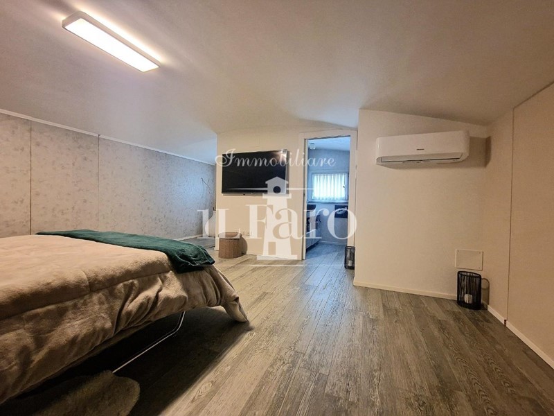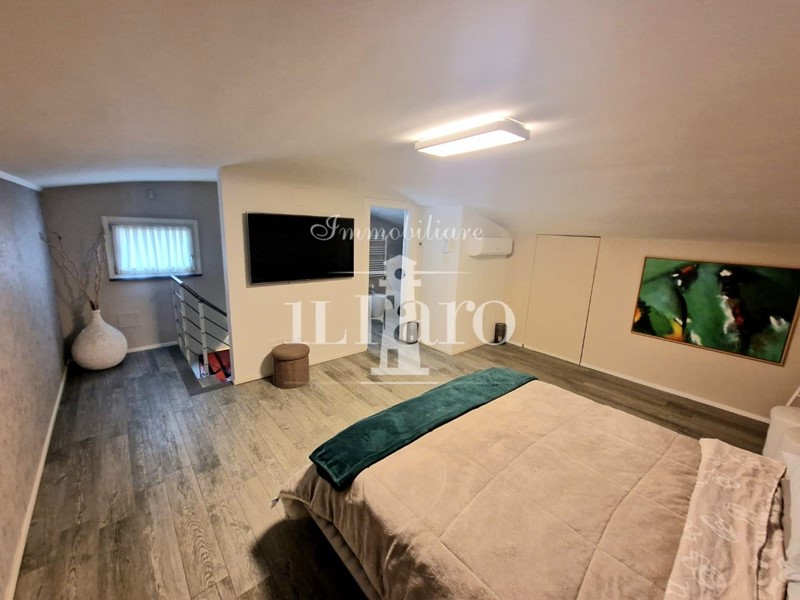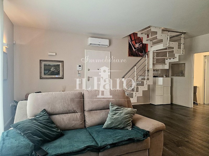 L'abitazione è così composta: Entrando ci accoglie una doppia zona giorno con angolo cottura collegata a una splendida terrazza, proseguendo troviamo una camera da letto matrimoniale e un bagno finestrato. Tramite una splendida scala di arredo si raggiunge il piano mansardato con ulteriore camera da letto matrimoniale un bagno e un vano guardaroba.