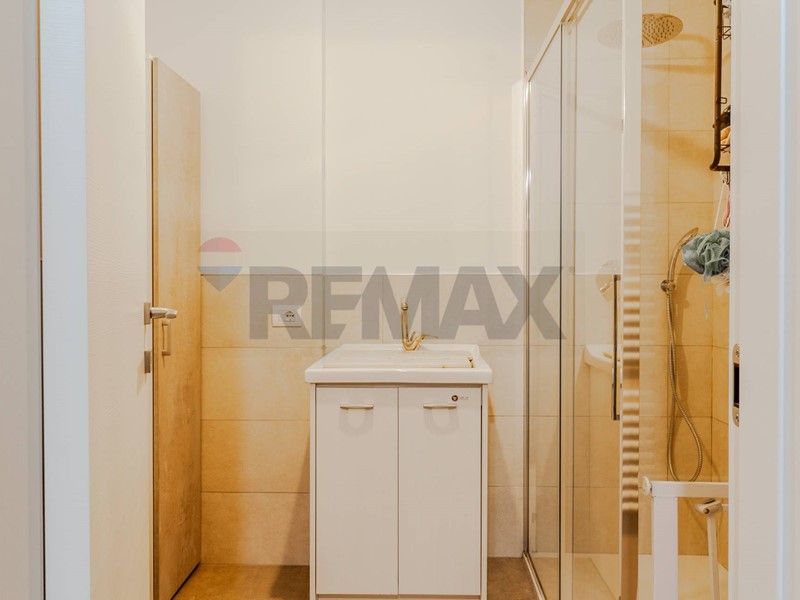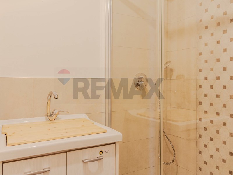 Il bagno con doccia completa il piano, garantendo luce naturale e praticità.
