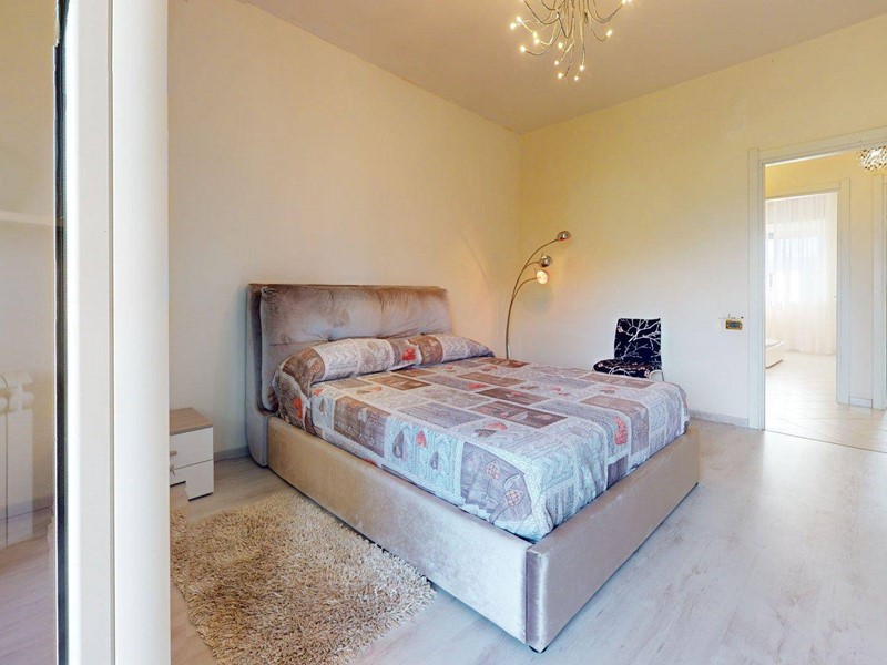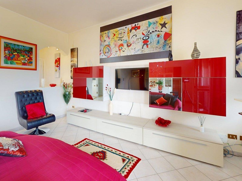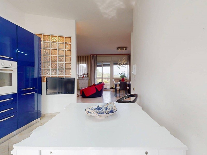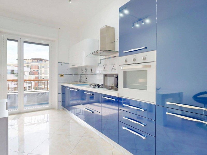 La cucina, pur mantenendo la sua indipendenza abitabile, dialoga armoniosamente con il resto della casa attraverso scelte cromatiche audaci e superfici lucide che ne esaltano la modernità. La zona notte è composta da due camere da letto dalle metrature generose, progettate per garantire il massimo comfort e privacy.