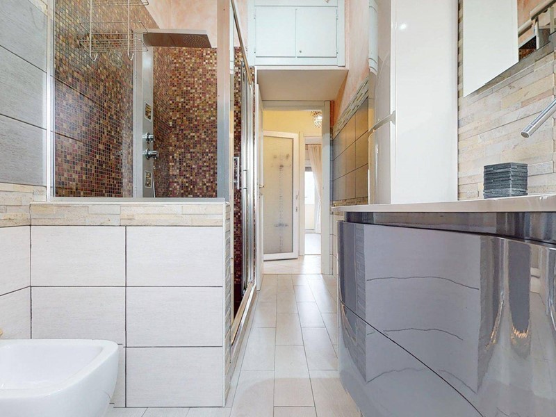 La funzionalità dell'immobile è completata da due bagni completi, entrambi dotati di box doccia, uno dei quali sapientemente organizzato per ospitare la zona lavanderia in totale discrezione.