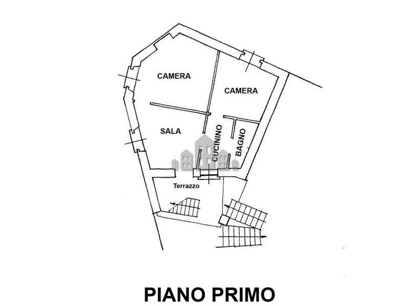 Lingresso si apre direttamente nella sala, ambiente centrale della casa da cui si sviluppano gli altri locali. Le due camere offrono spazi versatili, ideali sia per una coppia che desidera una stanza in più, sia per chi cerca una seconda casa con ambienti da dedicare anche agli ospiti. Il cucinino è separato e il bagno completa la distribuzione interna.