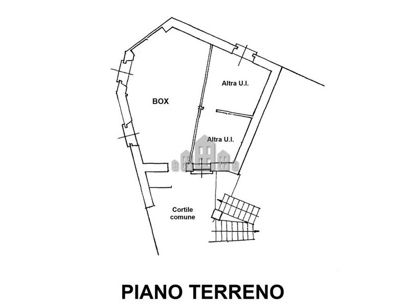 Al piano terreno troviamo un box auto, adatto a mezzi di dimensioni contenute come utilitarie, moto o scooter, oltre a un cortiletto comune condiviso con laltra unità abitativa.
