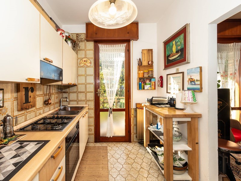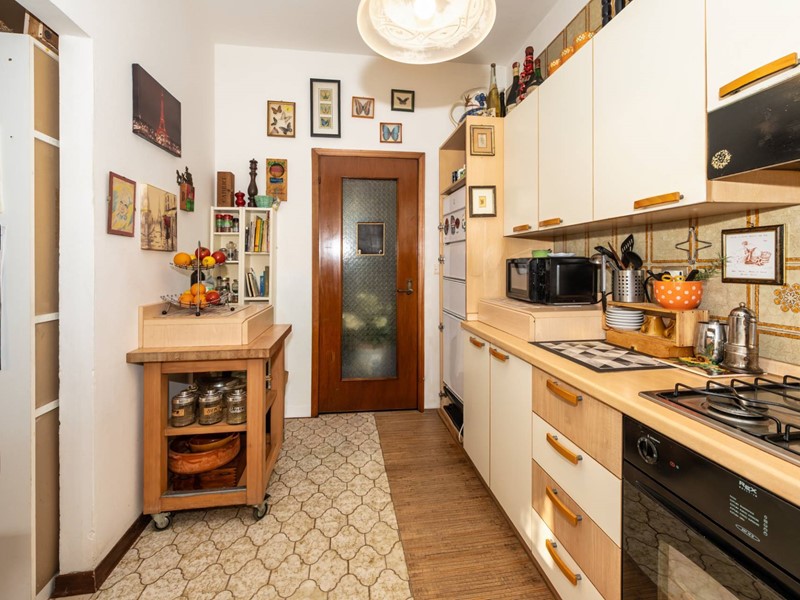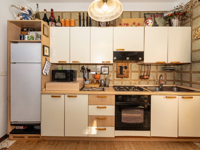 Il cucinino, separato e finestrato, mantiene funzionalità e ordine, integrandosi perfettamente nella distribuzione degli spazi.