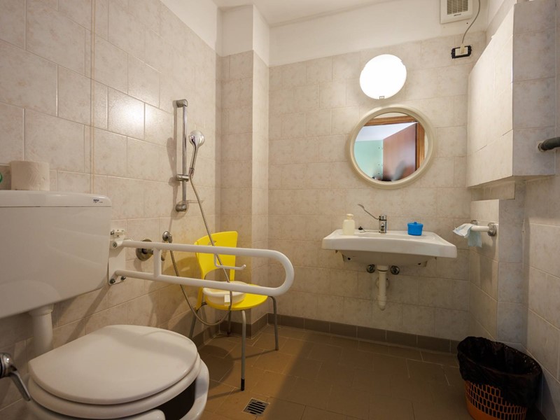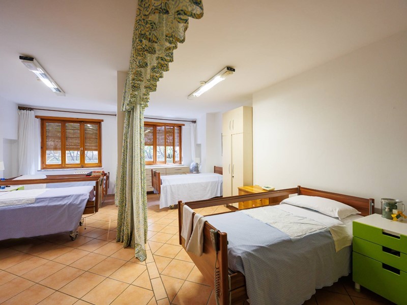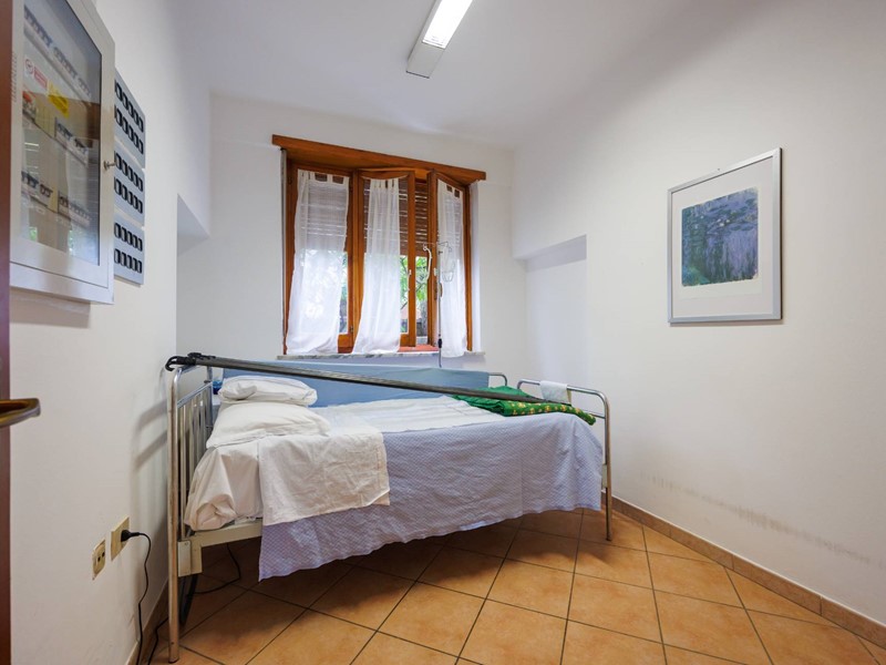 L'ingresso pedonale avviene tramite cancello elettrico direttamente nel grazioso cortile esterno che ci conduce al piano terra che è composto dall'ampio salone comune, le cucine, i bagni e gli uffici.