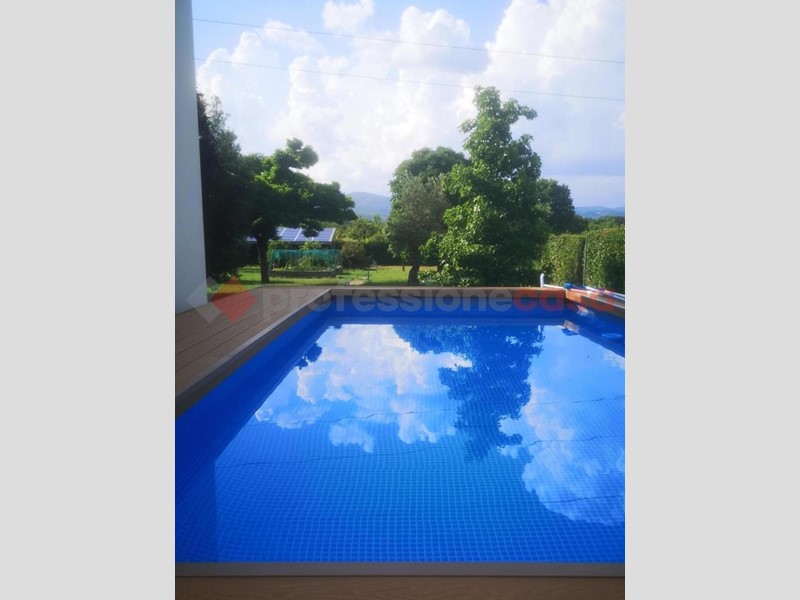 All'esterno la proprietà si distingue per un curato giardino privato di circa 2.000 mq, perfetto per momenti di relax e convivialità, arricchito da un portico ideale per pranzi all'aperto e da una splendida piscina. L'immobile è dotato di due pozzi e pannelli solari.