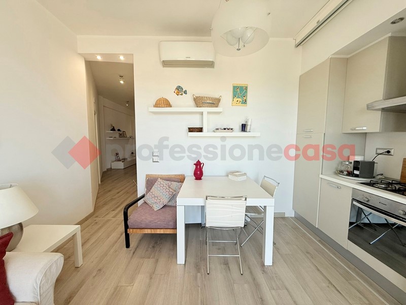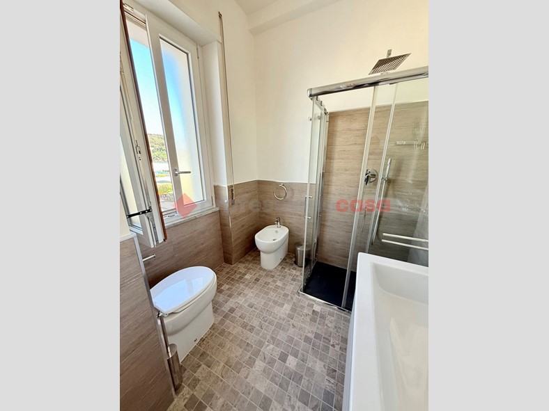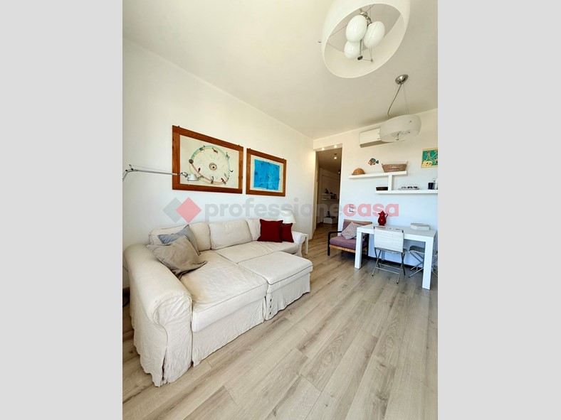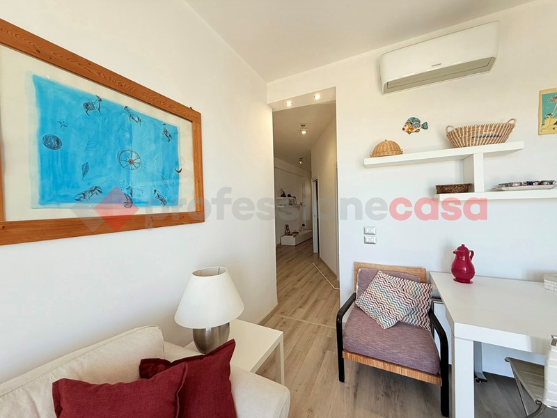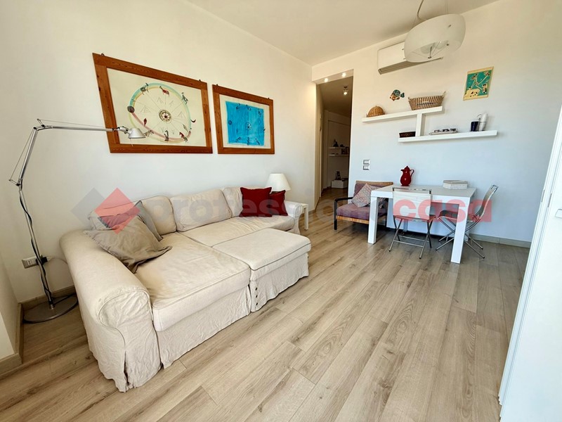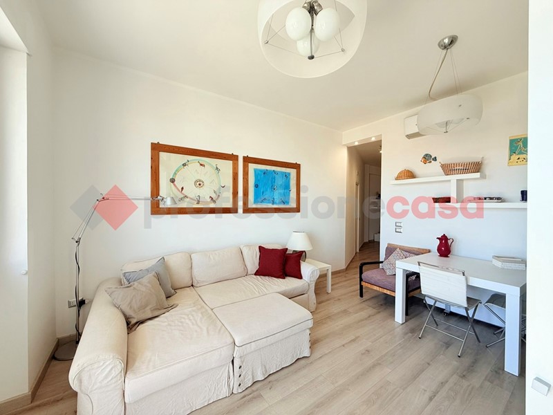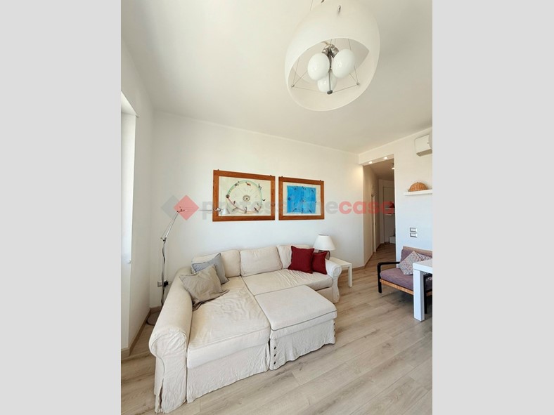 L'appartamento, posto al terzo piano di uno stabile recentemente ristrutturato e dotato di ascensore, si compone di un ampio soggiorno con cucina a vista e con affaccio sul balcone vivibile vista mare, due camere da letto e doppi servizi, arredato con cura e dotato di ogni comfort.