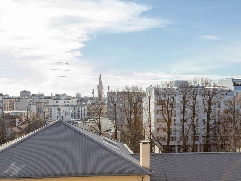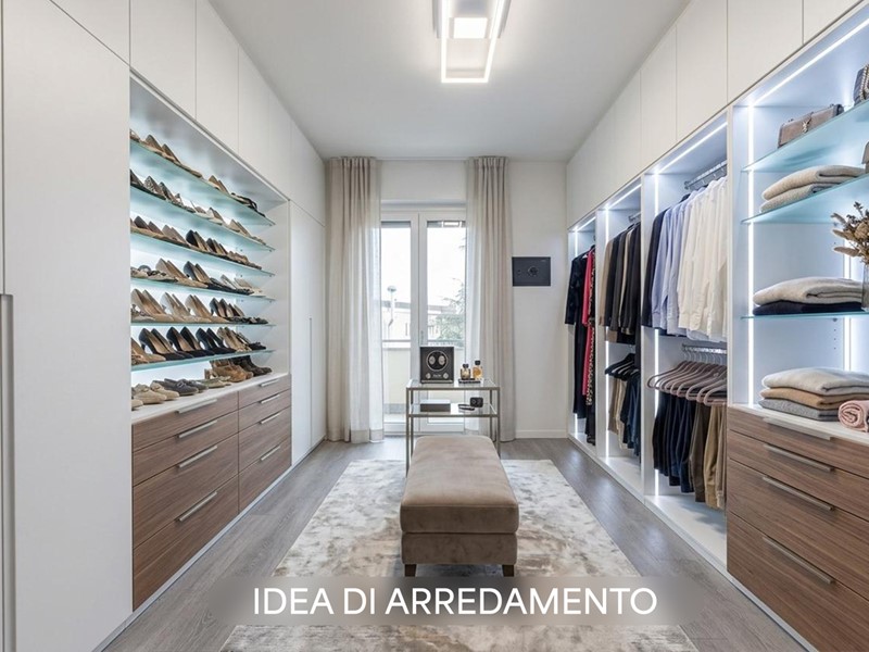 Serramenti moderni in PVC vetrocamera, impianto elettrico certificato. Due le terrazze, quella di servizio alla cucina ospita la centrale termica a pompa di calore, quella sul soggiorno permette la vista alberata su viale Trieste con vista campanile.