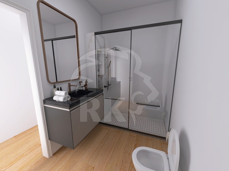 SOLUZIONE NR. B4 - BILOCALE (UNICO LIVELLO - PIANO TERRA) - Accesso al piano terra da corte interna, ingresso su soggiorno con angolo cottura, camera matrimoniale, ripostiglio / lavanderia, e bagno non finestrato.