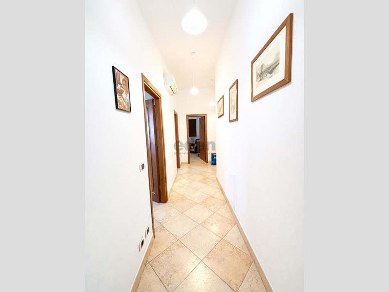 una cucina abitabile, una zona giorno di generose dimensioni, disimpegno notte, due camere da letto e bagno finestrato con ampio box doccia.