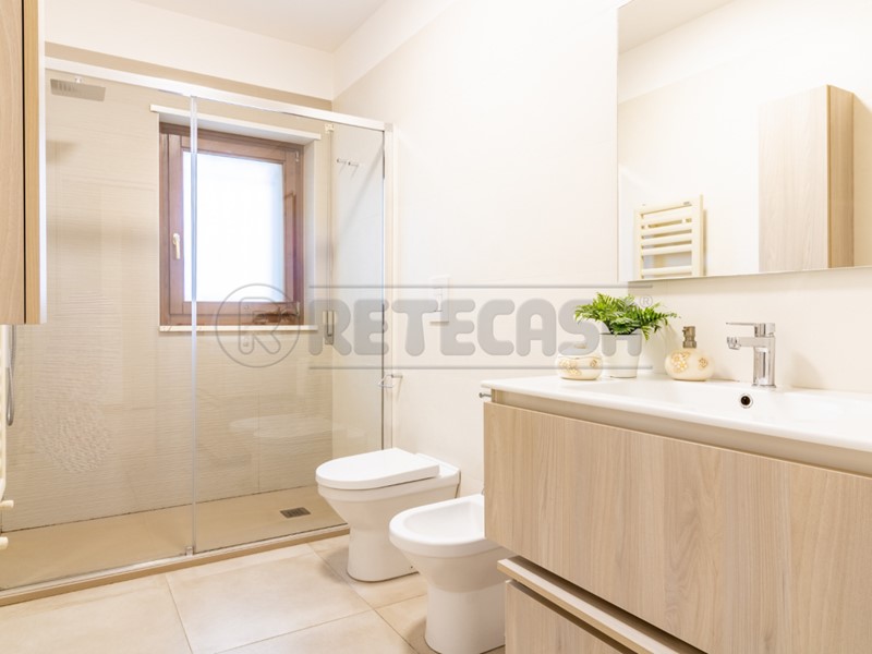 Il bagno padronale, elegante e dotato di doccia, e il bagno di servizio, che funge anche da lavanderia, offrono tutto il comfort necessario per una vita quotidiana pratica e funzionale.