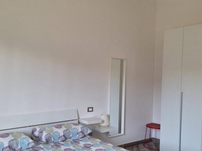 Dal soggiorno si accede a disimpegno con camera matrimoniale ampia e molto comoda . Da altro disimpegno si accede al bagno finestrato e munito di doccia .