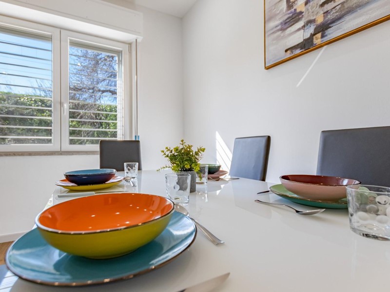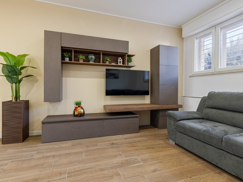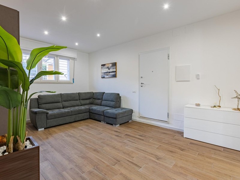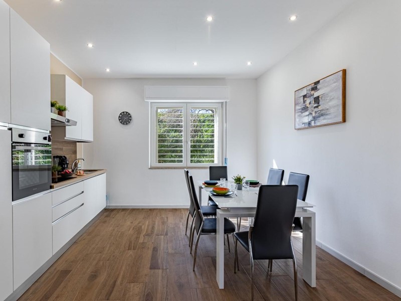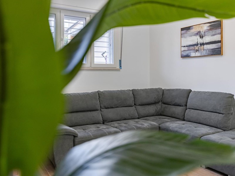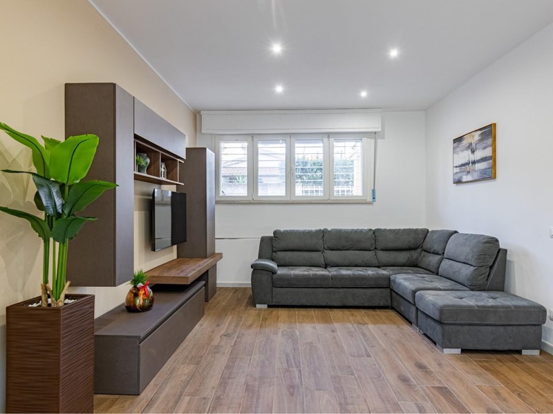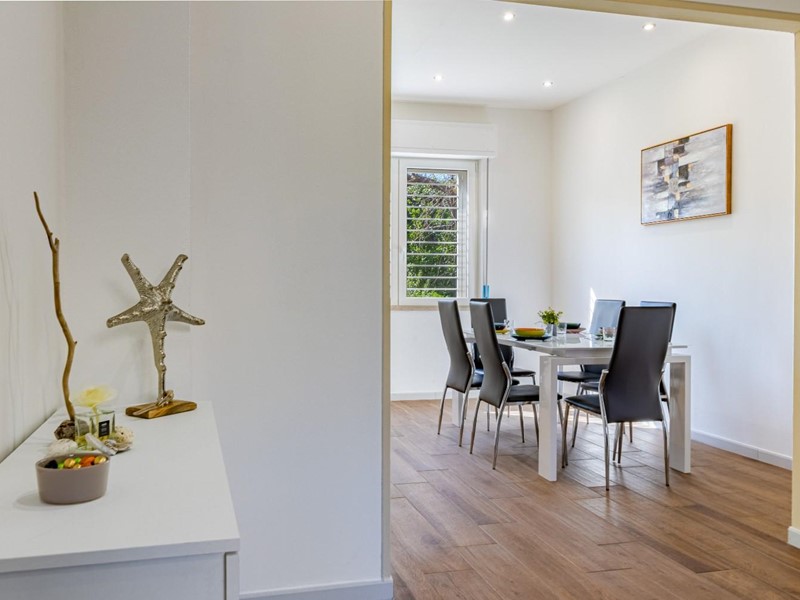 L’appartamento, situato al piano terra leggermente ribassato, gode di una temperatura naturalmente piacevole anche nelle ore più calde, offrendo un’oasi di relax e frescura al rientro dal mare. Il cuore della casa è l'ampia zona giorno, uno spazio moderno e accogliente ideale per condividere i momenti conviviali della vacanza.