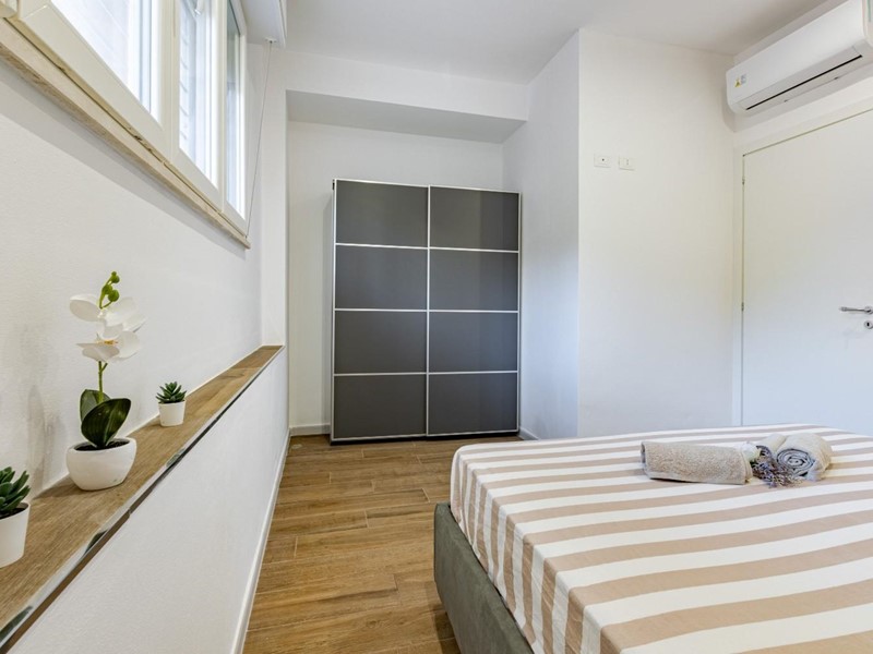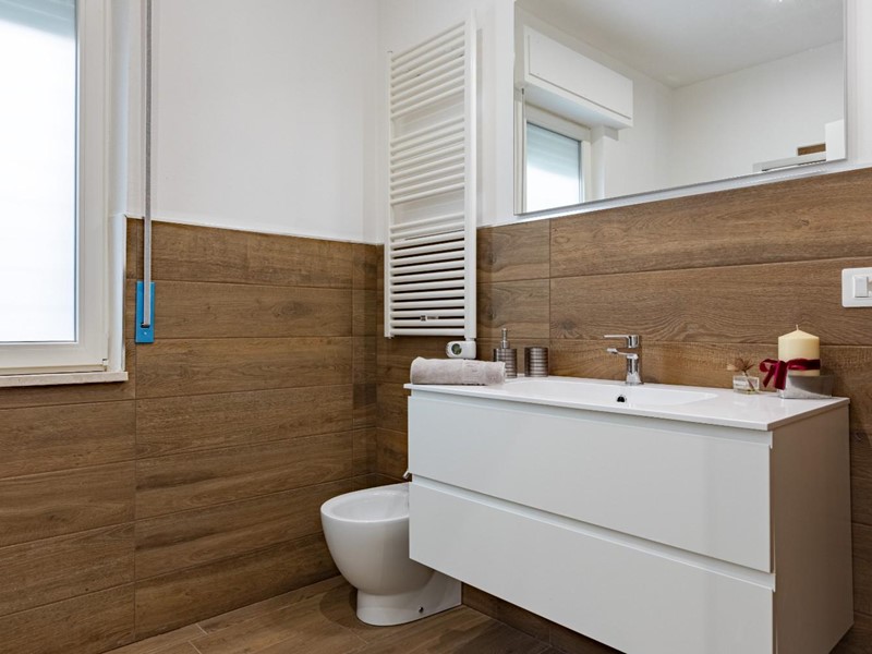 Completano l'alloggio un bagno spazioso dotato di una moderna doccia e un pratico ripostiglio, fondamentale per organizzare al meglio i bagagli.