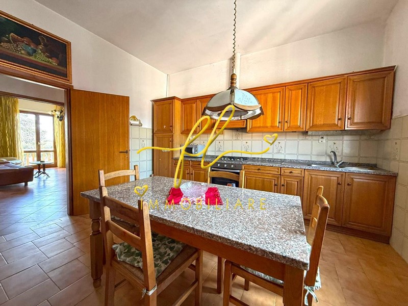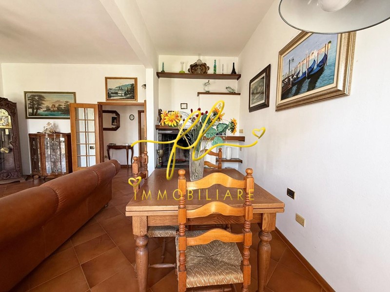 La proprietà si distingue per gli ambienti ampi, ariosi e ben distribuiti: un grande salone doppio con camino rappresenta il cuore della casa e si apre su uno splendido terrazzo angolare con vista mare, perfetto per pranzi all’aperto e momenti di relax. La cucina è abitabile e funzionale, mentre la zona notte comprende due spaziose camere matrimoniali e un bagno.