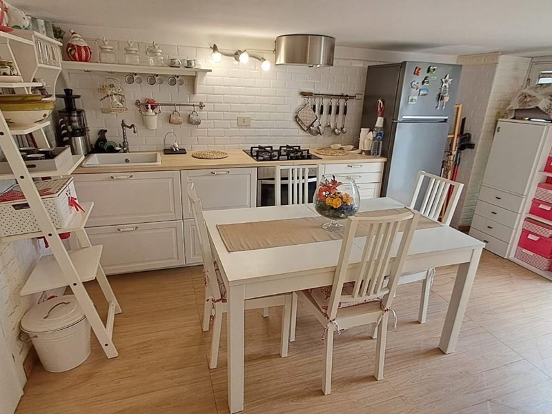 Al piano terreno si trova un locale di sgombero composto da due vani (cucina e camera + bagno), oltre al giardino e ampio spazio piastrellato per poter parcheggiare fino a n. 4 auto (complessivi circa 140 mq).