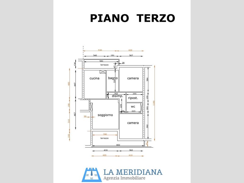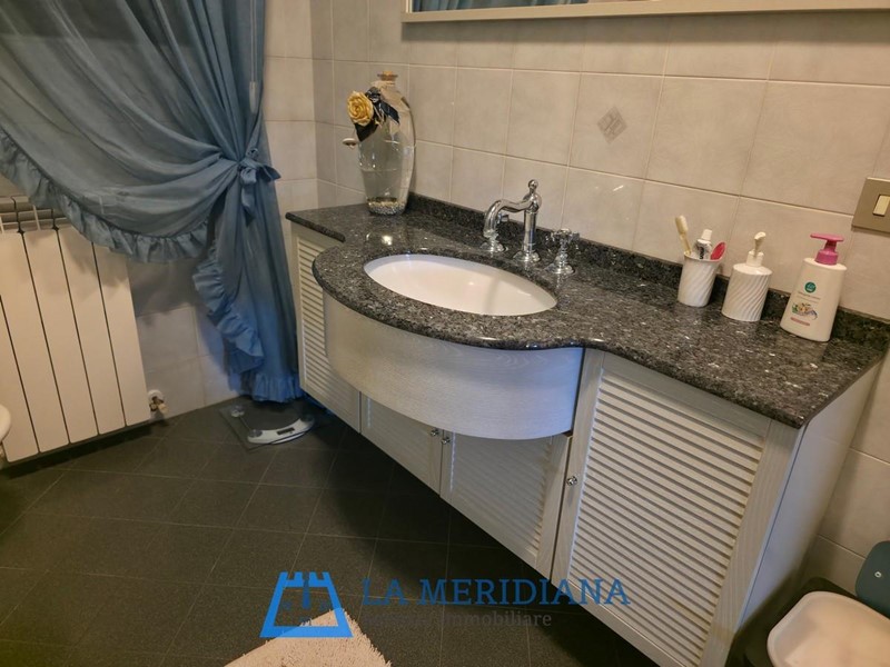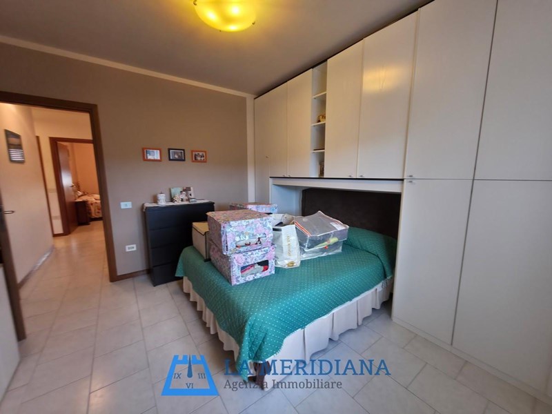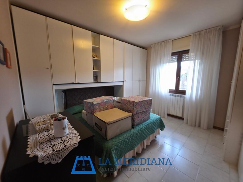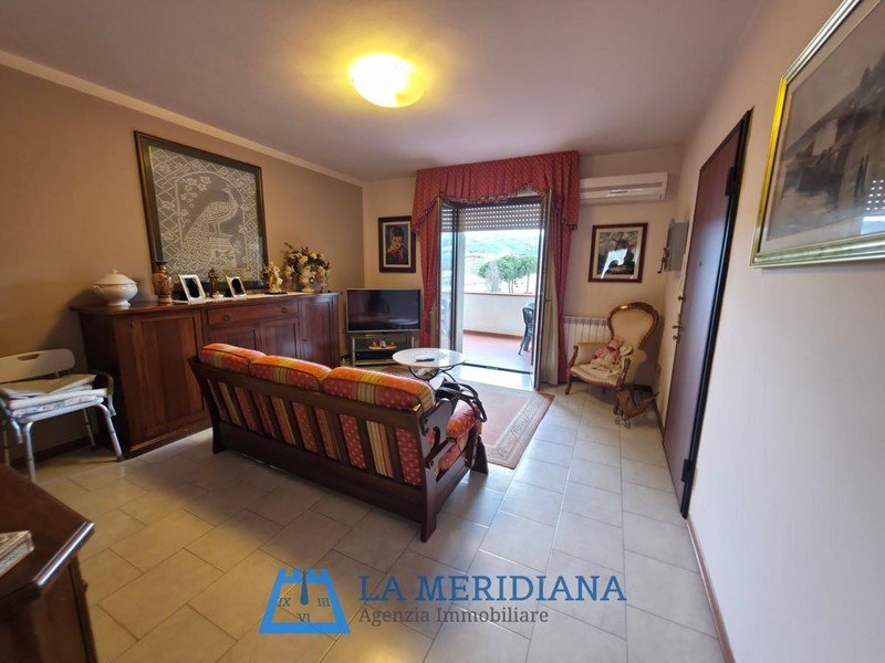 Soggiorno con accesso ad ampia terrazza, dalla quale si gode di un'ottima vista, cucina abitabile con accesso a terrazza frontale, disimpegno, bagno finestrato con doccia, due camere matrimoniali e ulteriore bagno di servizio.