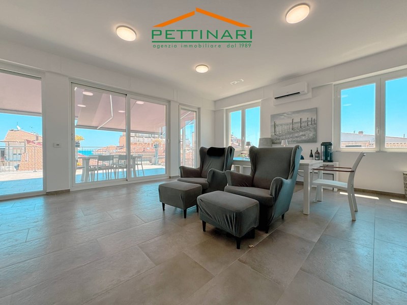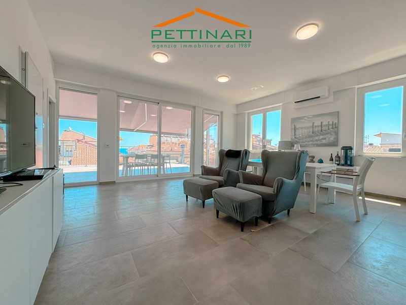 Questo splendido attico, situato a pochi passi dal mare, è una soluzione unica, pensata per chi desidera comfort, eleganza e una posizione impareggiabile.