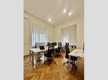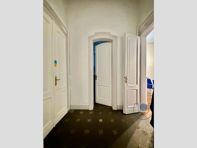 L'immobile è composto di ingresso su disimpegno, sei camere attualmente adibite ad ufficio, doppi servizi e ripostiglio.