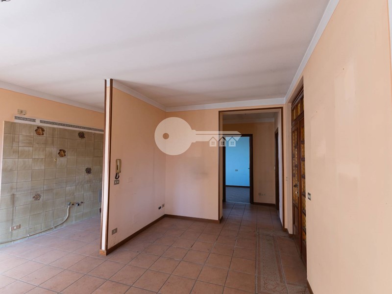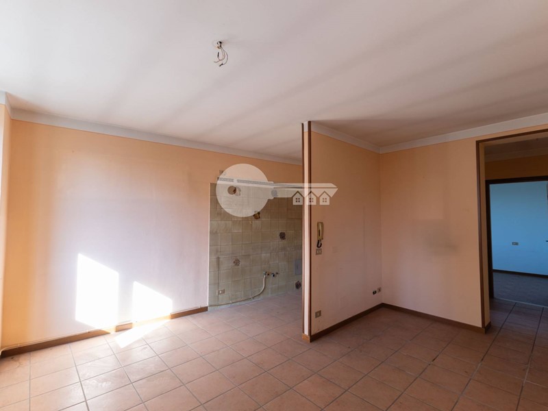 Ingresso su ampio e luminoso soggiorno con angolo cottura, con possibilità di realizzare un unico open space.