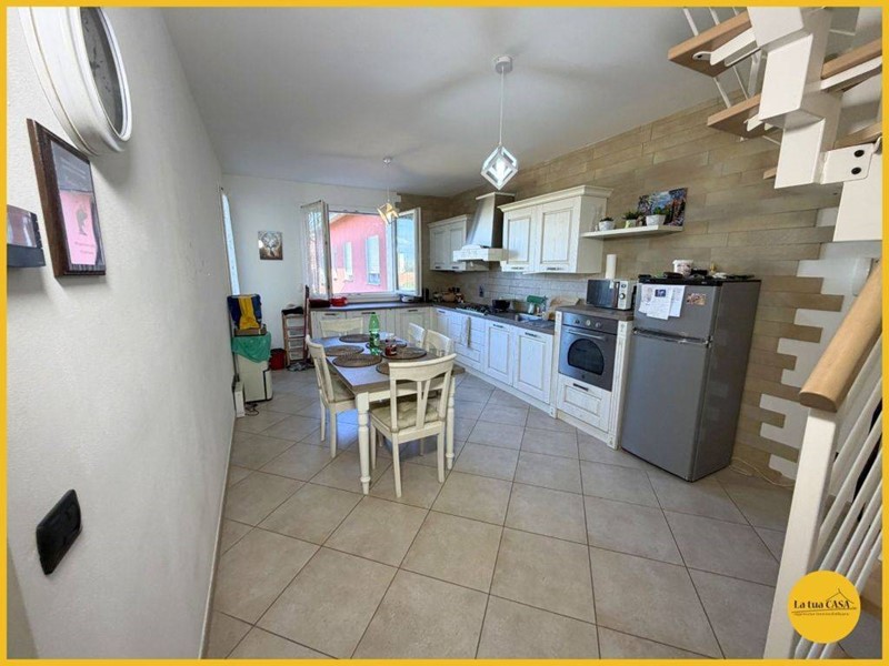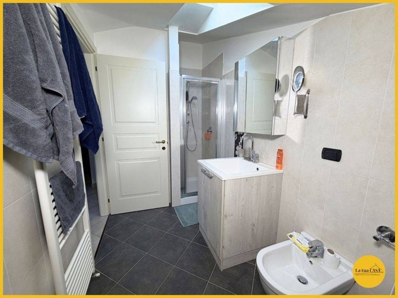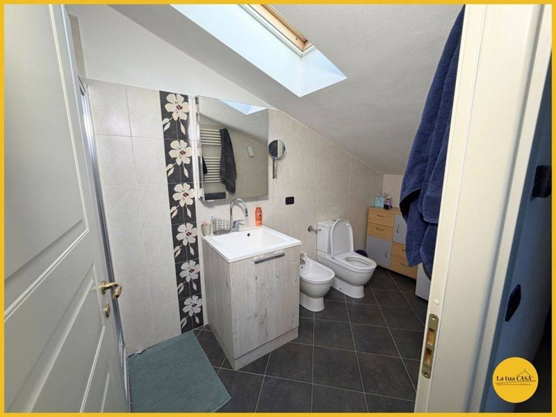 Salendo al piano superiore troviamo una mansarda abitabile, composta da una splendida suite matrimoniale con bagno privato e box doccia, perfetta come zona padronale o spazio indipendente. Limmobile è dotato di riscaldamento a pavimento, tapparelle elettriche e impianti di nuova generazione, che assicurano consumi energetici molto contenuti e unelevata efficienza. Completano la proprietà un garage e una cantina di pertinenza, ideali per soddisfare ogni esigenza di spazio e organizzazione.