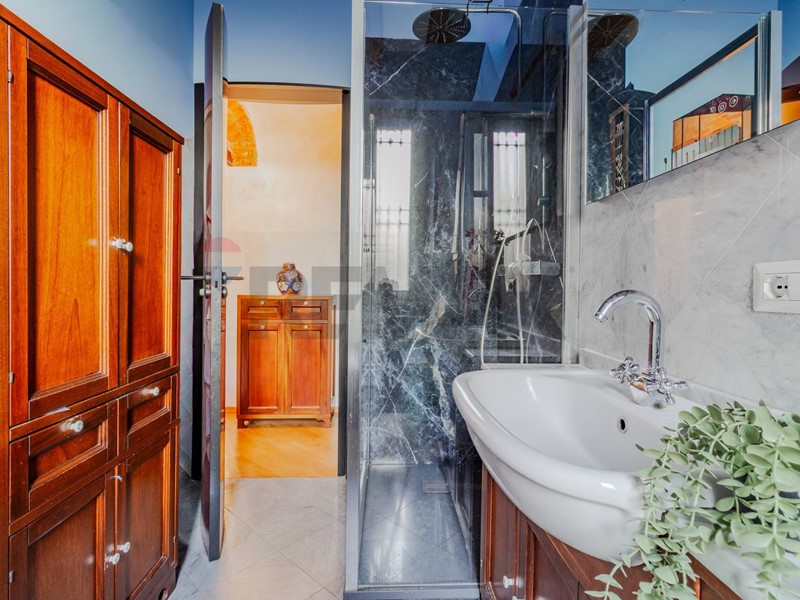 La zona giorno prosegue con naturalezza verso la sala da pranzo, ideale per accogliere ospiti, affiancata da una cucina abitabile funzionale e ben organizzata, oltre a un comodo bagno di servizio. Sempre al primo livello si trova la camera matrimoniale, un ambiente riservato e confortevole, completo di bagno en suite e cabina armadio, pensato per garantire benessere quotidiano.