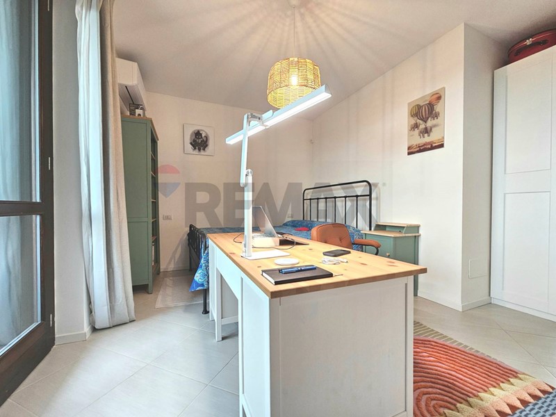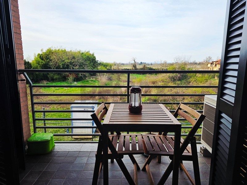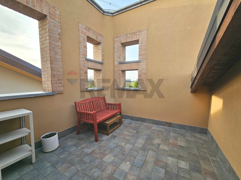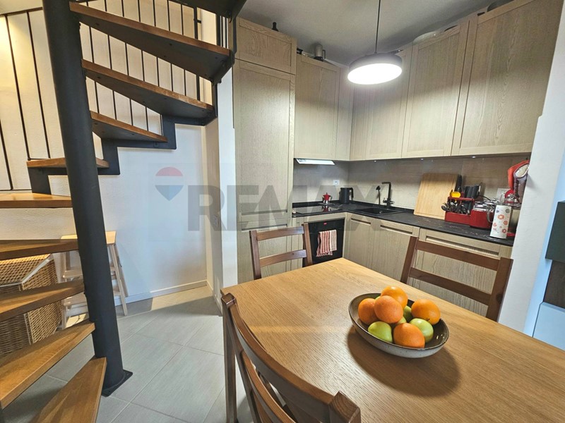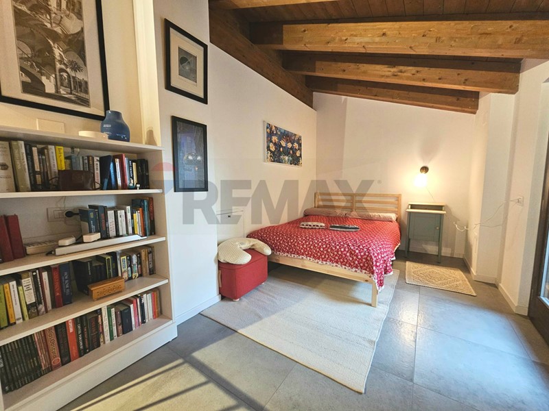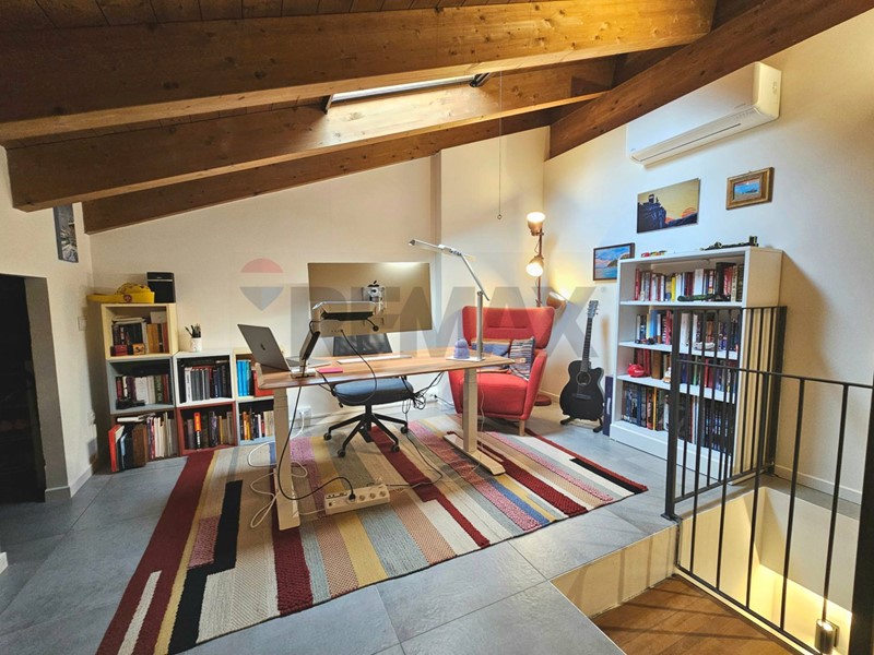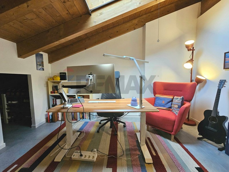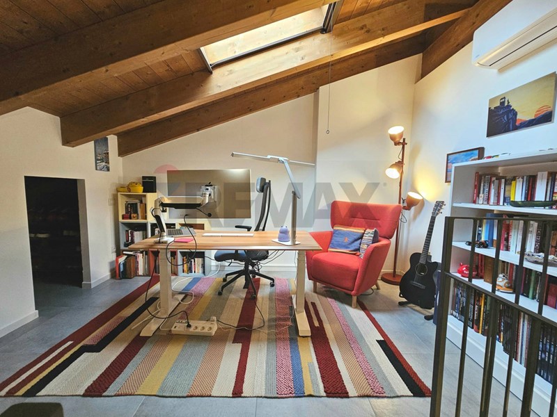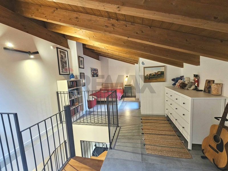 Entrata su disimpegno che affaccia sul soggiorno, cucina angolare a vista, camera da letto matrimoniale ed un grazioso balcone che affaccia sul verde. Al piano superiore troviamo un caratteristico piano mansardato con splendide travi a vista ed un'ottima metratura che permette di dividere i spazi tra zona notte e zona studio. Completa il piano mansardato, uno splendido terrazzo con vista verso la Certosa di Pavia. Completa la soluzione ampio box e cantina.