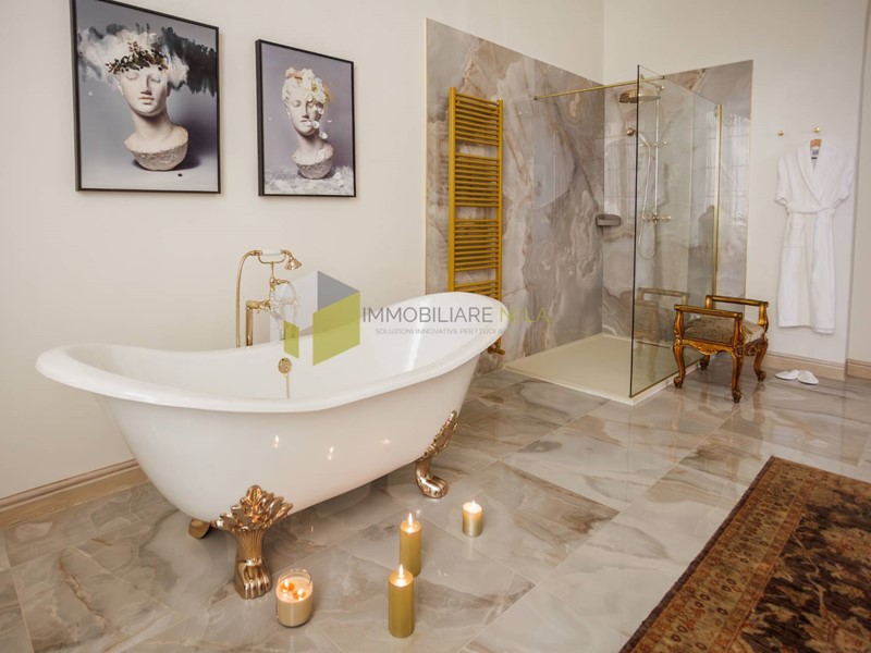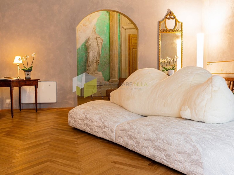 Limmobile, di una superficie di 470 mq, è una bellezza che vibra tra passato e presente. Si sviluppa in una zona giorno composta da grandi sale affrescate, una confortevole sala da pranzo e cucina e delle bellissime camere da letto ognuna dotata del proprio elegante bagno.