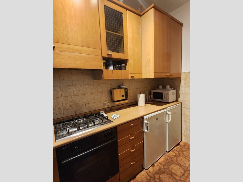 Aurisina-Cave: in zona tranquilla...appartamento sito al 1°piano composto da ingresso, salone, cucinotto, disimpegno, 3 camere, bagno, terrazzo, cantina e box auto...termoutonomo, cappotto interno, porta blindata, clima, serramenti in alluminio, parzialmente arredato, libero subito. 228.000 (rif.1658)