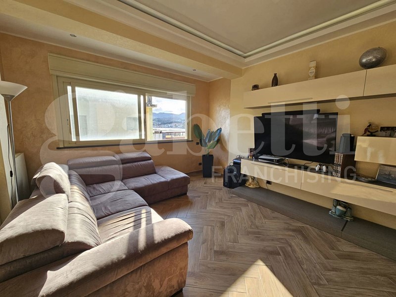 L'immobile è posto al secondo piano e offre ambienti accoglienti e moderni grazie alla sua recente ristrutturazione. Internamente presenta una distribuzione degli spazi funzionale e nuova; un ampio ingresso ci conduce direttamente alla luminosa zona living con l'ampia cucina a vista, le camere da letto sono due ed entrambe comode e spaziose; il bagno è dotato di finestra e box doccia e vi è un pratico ripostiglio/lavanderia. Il balcone che circonda l'intera casa favorisce uno sfogo notevole con vista su uno scorcio di lago. A completare i confort dell'abitazione, l'ampio terrazzo sovrastante di circa 100 mq e di proprietà esclusiva. Infine, un posto auto di proprietà ed uno condominiale in area esterna garantiscono tranquillità e sicurezza.