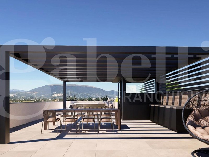 Perugia- località Collestrada: in zona comoda e servita disponiamo di attico (INT 14) posto al terzo piano, con affaccio su tre lati, composto da: soggiorno con accesso al terrazzo, serra solare con accesso al terrazzo, cucina, tre camere da letto, 2 bagni. Dall'interno dell'immobile si accede tramite scala privata al lastrico solare sito al quarto piano di 159,17 mq. Abbinato alla proprietà un posto auto scoperto privato (S10) compreso nel prezzo ed un garage (G2) di 22,37 mq ad ? 20.000. Le principali caratteristiche costruttive sono le seguenti: - classe A4; - struttura antisismica; - impianto fotovoltaico; - pompa di calore; - riscaldamento a pavimento; - possibilità di finiture interne personalizzate tramite ampio capitolato di alto livello. Consegna prevista settembre 2026.