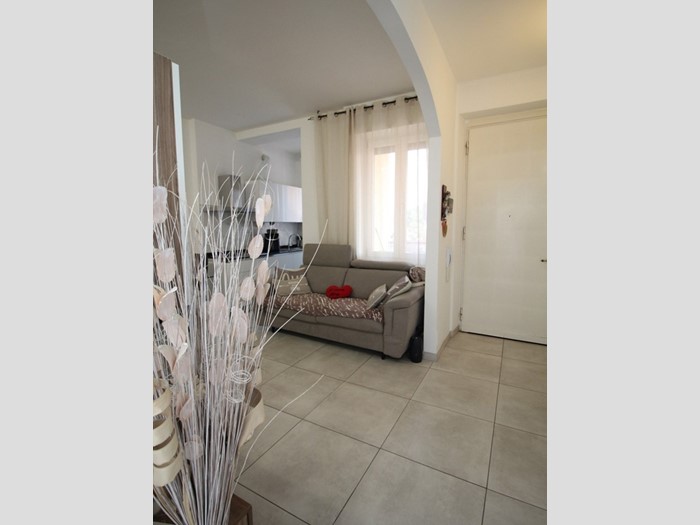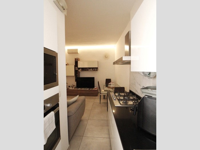 L'ingresso si apre su un'accogliente zona living con cucina a vista. Un comodo disimpegno, conduce nella zona notte dove troviamo un bagno moderno con doccia, un comodo ripostiglio e l'ampia camera da letto matrimoniale servita da balcone.