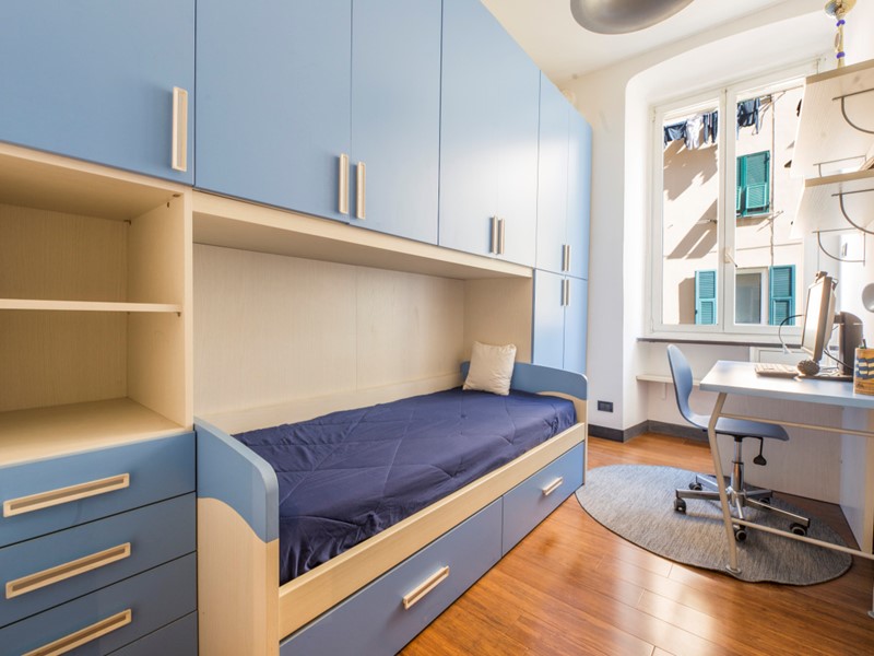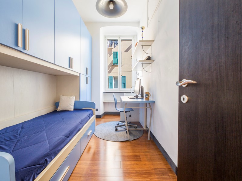 L'appartamento, che è collocato al secondo piano dotato di ascensore all'interno di un palazzo genovese, si trova in buone condizioni di manutenzione e si compone di in ingressino presso la accogliente zona giorno dotata di angolo cottura open-space, due ampie camere da letto matrimoniali, uno spazioso studio, un bagno finestrato ed infine un comodo e profondo ripostiglio.