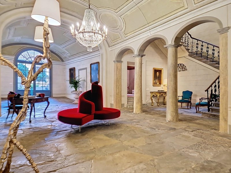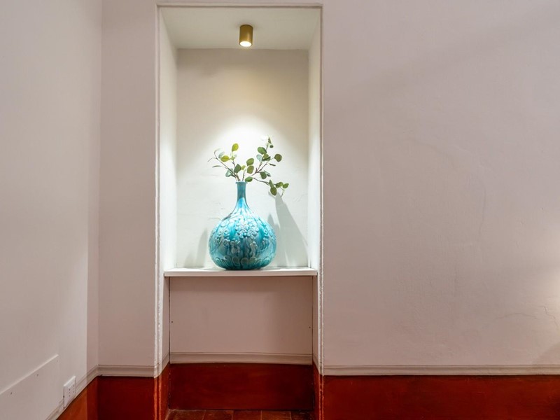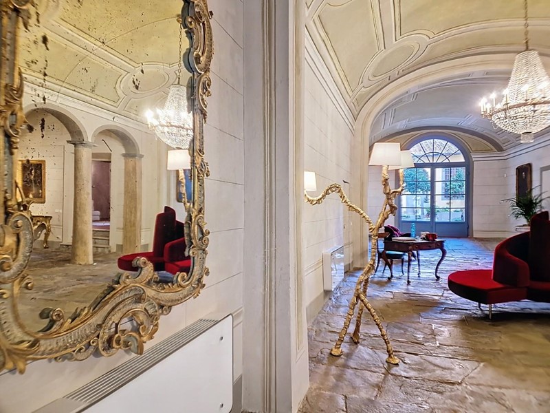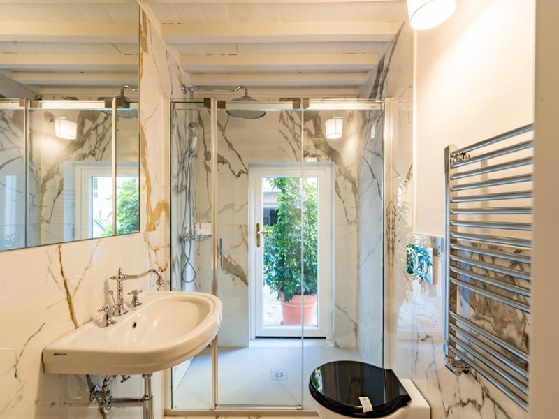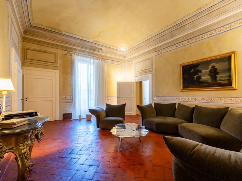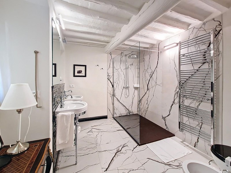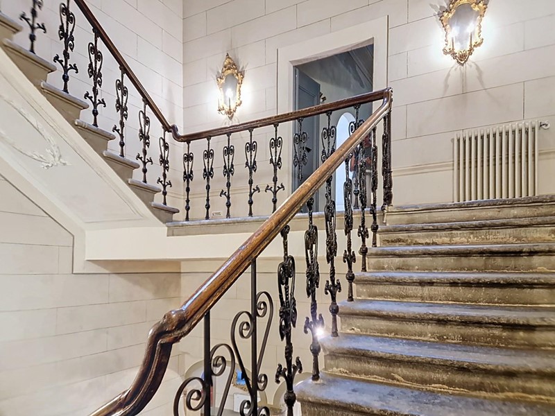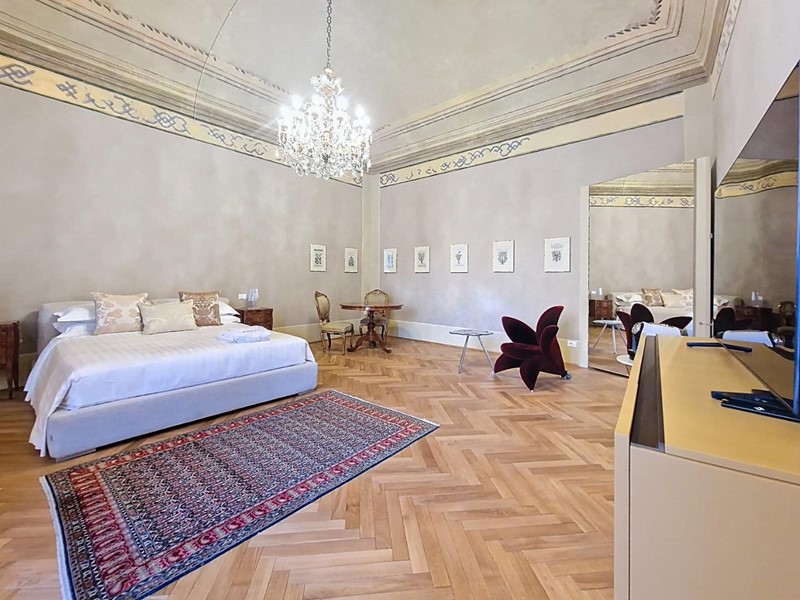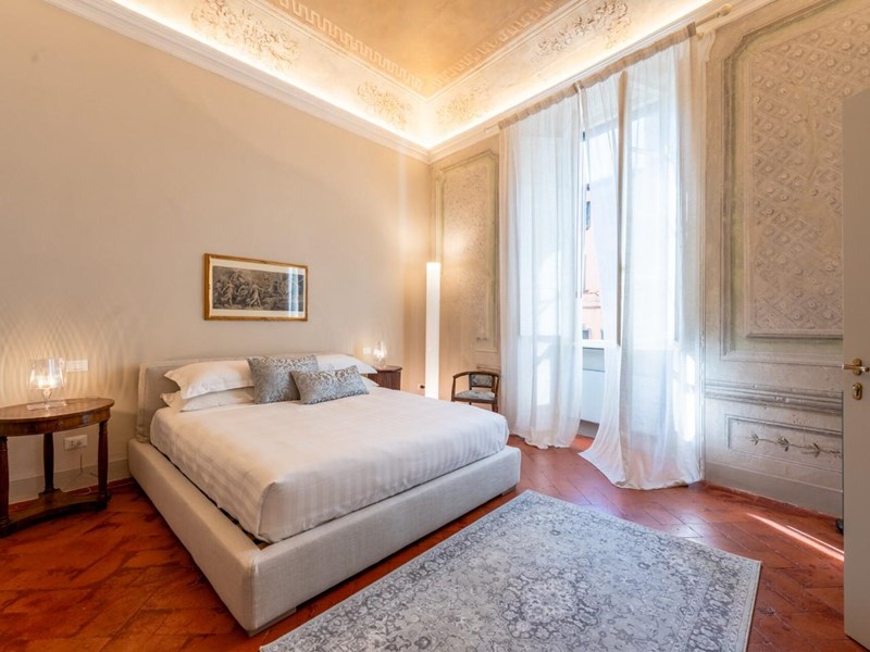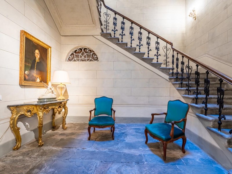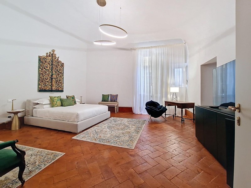 La proprietà si sviluppa su quattro livelli collegati da una scenografica scala in pietra, arricchita da ferro battuto e legno lavorato, illuminata dall’alto da una grande apertura che diffonde luce naturale. Grazie alla doppia esposizione, gli ambienti risultano luminosi e ariosi. Attualmente sono presenti sei suite di ampia metratura, restaurate con attenzione e gusto, dove materiali originali e dettagli storici si combinano con soluzioni più contemporanee.