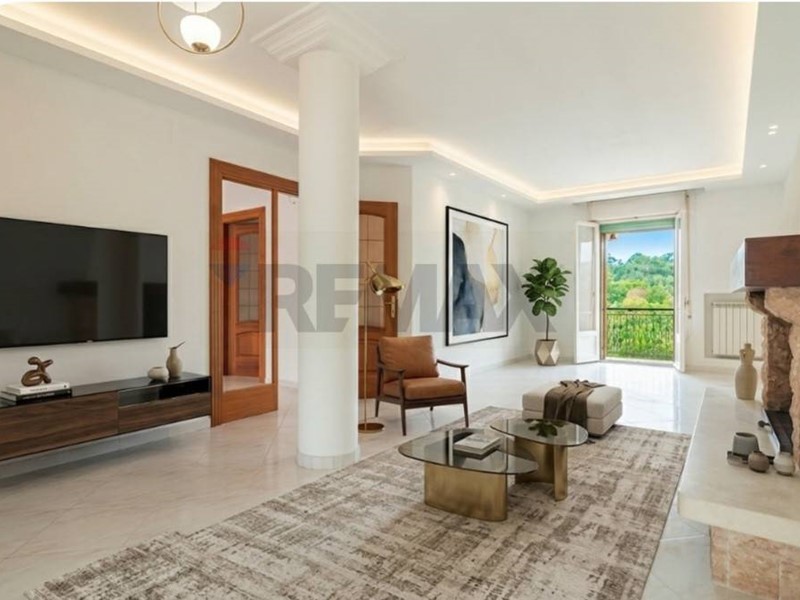 Living Area: A spacious lounge graced by elegant columns that add character and refinement, featuring direct access to the terrace.