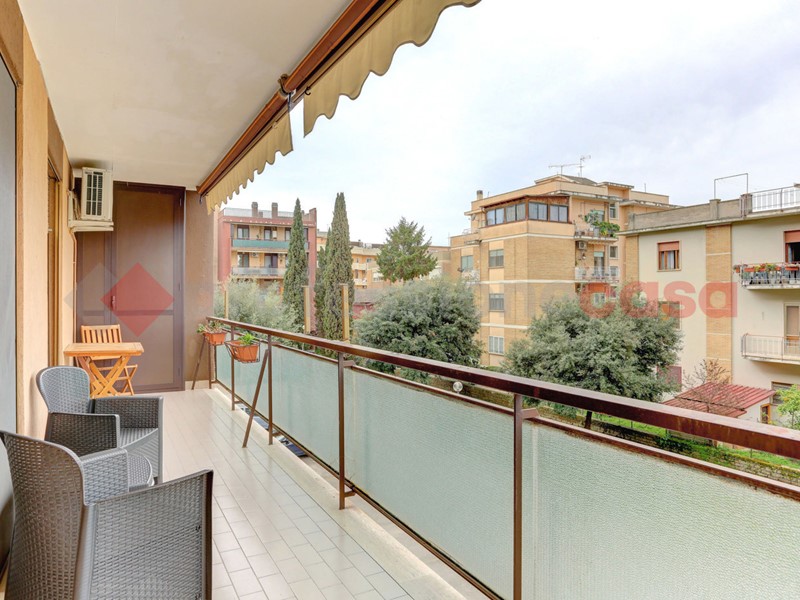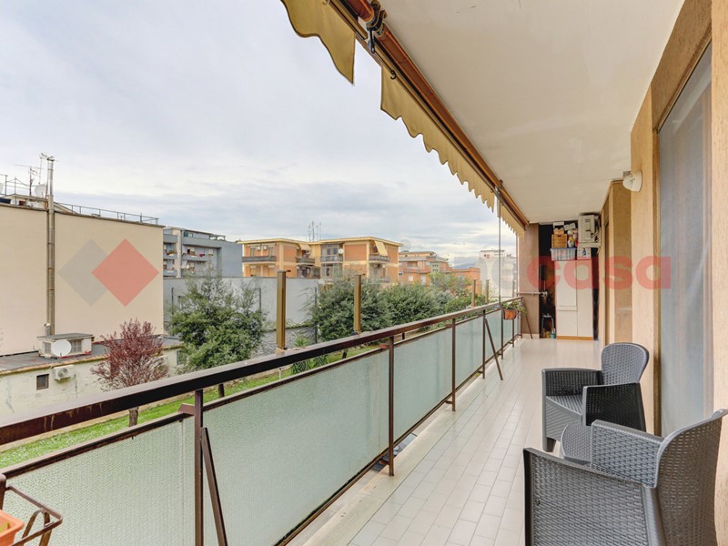 L'immobile è posto al secondo piano di una palazzina dotata di ascensore. L'ingresso è direttamente nel soggiorno con cucina separata e accesso al balcone abitabile di 25 mq. Proseguendo nel disimpegno, troviamo due camere da letto, doppi servizi (uno finestrato) e un ripostiglio. Completa la proprietà un box auto di 25 mq.