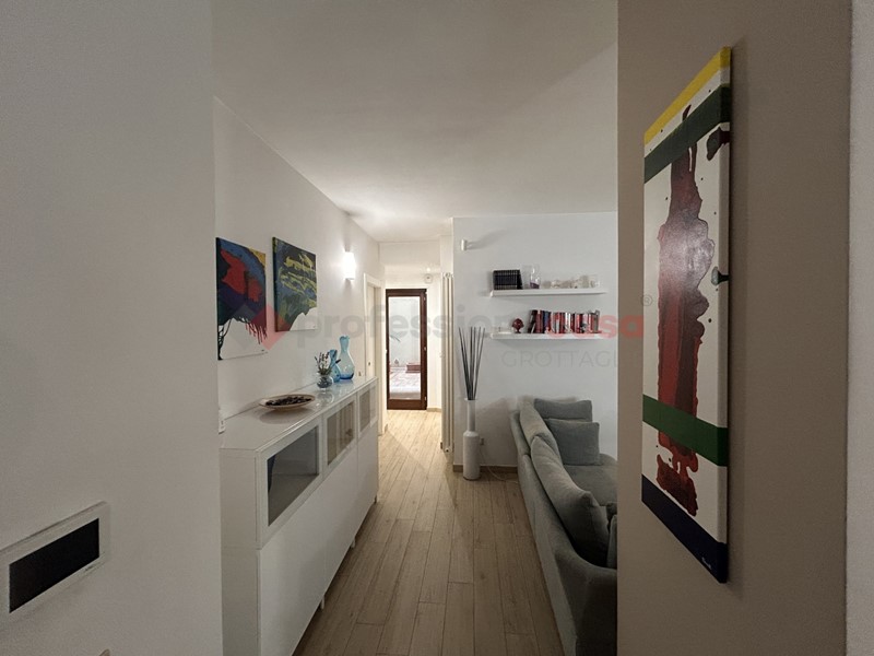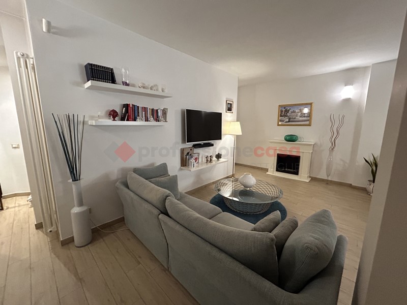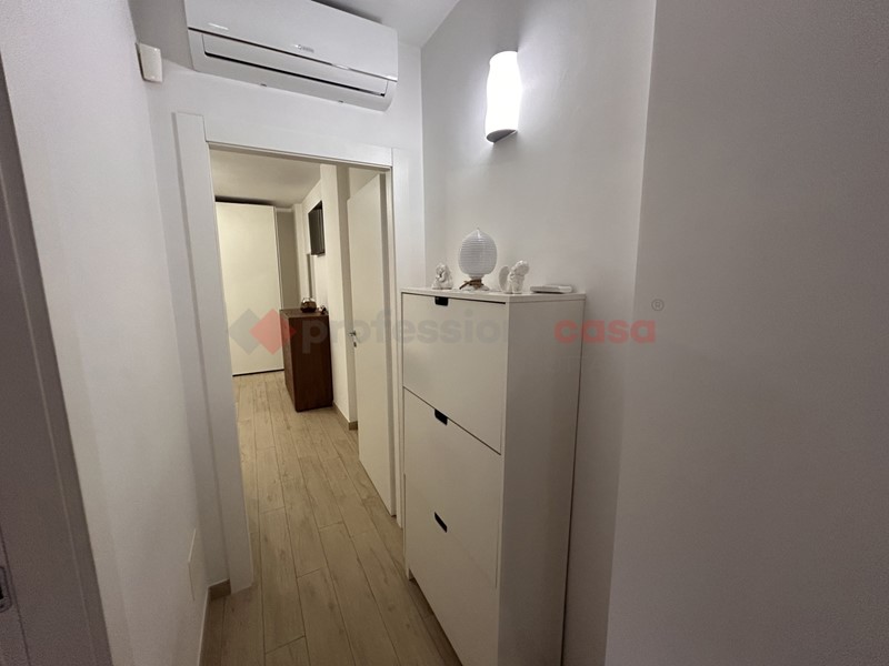 L'immobile, della superficie di circa 100 mq, si apre su un ampio living doppio, valorizzato dalla presenza di una porta finestra con accesso a un balconcino con affaccio su strada. Adiacente si trova il cucinotto, ben organizzato e funzionale. La distribuzione interna è resa particolarmente pratica dalla presenza di due disimpegni: uno conduce alla zona notte, composta da due camere da letto, di cui una con accesso diretto alla chiostrina tramite porta finestra; l'altro disimpegno conduce ai servizi, costituiti da un bagno padronale con doccia walk-in e da un secondo bagno di servizio.