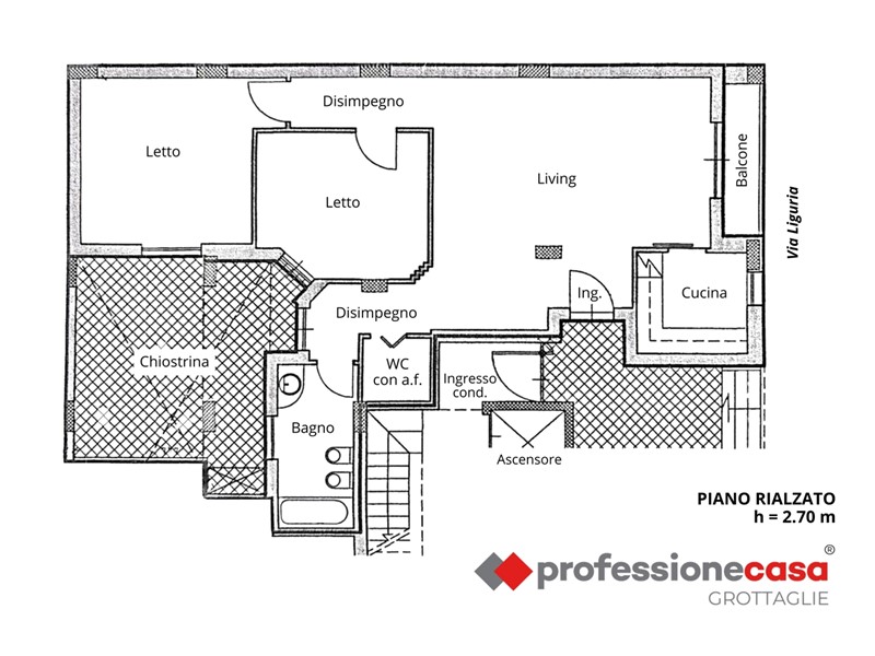 Elemento distintivo dell'immobile è la chiostrina di circa 24 mq, accessibile direttamente dall'abitazione, ideale come spazio esterno riservato per momenti di relax.