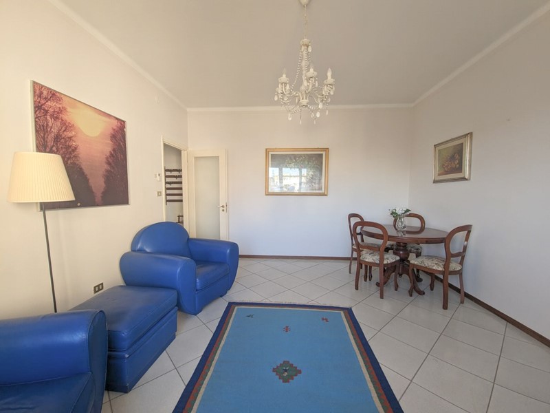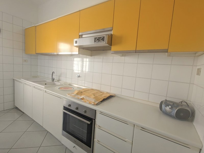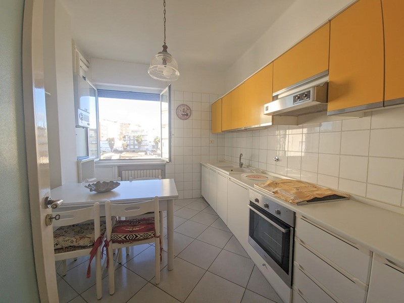 L'appartamento è ben distribuito: ingresso ampio, soggiorno, cucina abitabile, camera molto grande, bagno finestrato e ripostiglio. Gli spazi sono generosi per la tipologia e la pianta consente, per chi lo desiderasse, di ricavare una seconda camera trasformando la cucina e realizzando un angolo cottura nel soggiorno. Da tutte le stanze, affacciandosi, si coglie uno scorcio di mare verso destra. Il riscaldamento è autonomo, gli infissi sono stati sostituiti in alluminio con doppi vetri, le tubature di scarico del bagno sono state rifatte. Le restanti finiture sono quelle originali degli anni Sessanta: chi vuole intervenire trova un appartamento già funzionante, con la possibilità di personalizzarlo nel tempo.