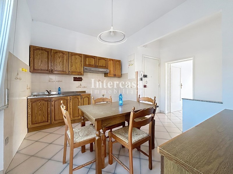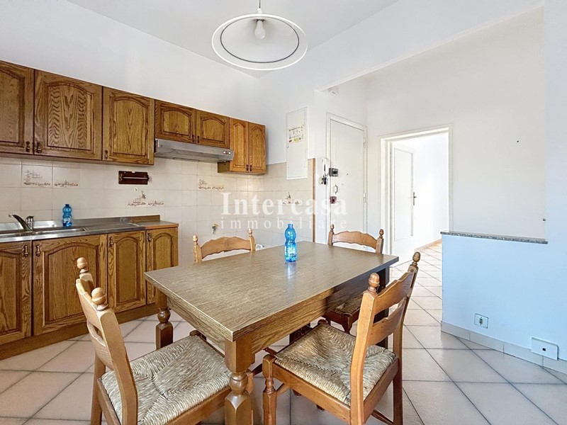 ingresso tradizionale, soggiorno luminoso con balcone, cucina abitabile con accesso al secondo balcone semiabitabile, disimpegno notte, due ampie camere matrimoniali e bagno finestrato con doccia recentemente ristrutturato.