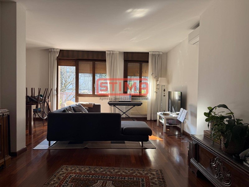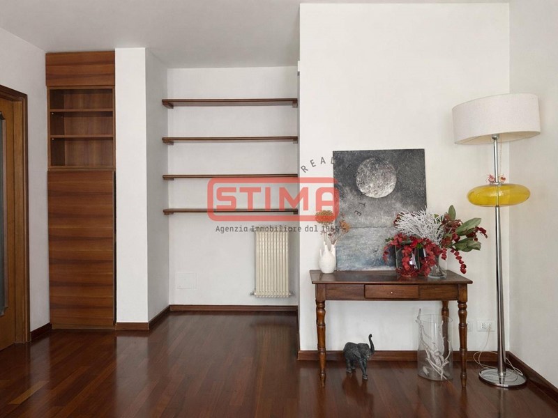 Limmobile si distingue per i grandi spazi introvabili di un tempo, valorizzati dal pavimento in legno di iroko, che esalta larredo moderno e si abbina con naturale eleganza anche allo stile classico.