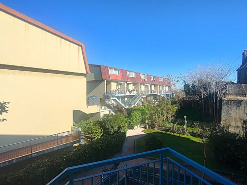 Sant'Agata li Battiati, via Giacomo Leopardi : In contesto tranquillo, adiacente il centro del paese, all'interno di un residence signorile, vi proponiamo l'occasione di acquisto della nuda proprietà di un bell'immobile. L'appartamento, disposto su due livelli, risulta ben diviso con una zona giorno al piano inferiore composta da ingresso, disimpegno, cucina abitabile, soggiorno doppio con uscita su terrazzino, bagno di servizio e balconcino interno. La zona notte, ubicata al piano superiore, risulta ben congeniata e confortevole con la presenza di tre camere da letto, un bagno con doccia, un bel terrazzino panoramico e un balconcino interno che offre lo spazio anche ad una piccola lavanderia. La soluzione è fornita di riscaldamento autonomo a metano, un climatizzatore nella zona notte, infissi in legno con doppio vetro ed oscuranti , persiane in ferro. La pavimentazione è stata realizzata in gres effetto marmo nella zona giorno, in parquet nella zona notte. Un comodo garage di circa 20 mq completa l'offerta. All'interno il residence offre spazi verdi, aree per i bimbi, servizio di portineria, posti auto liberi.