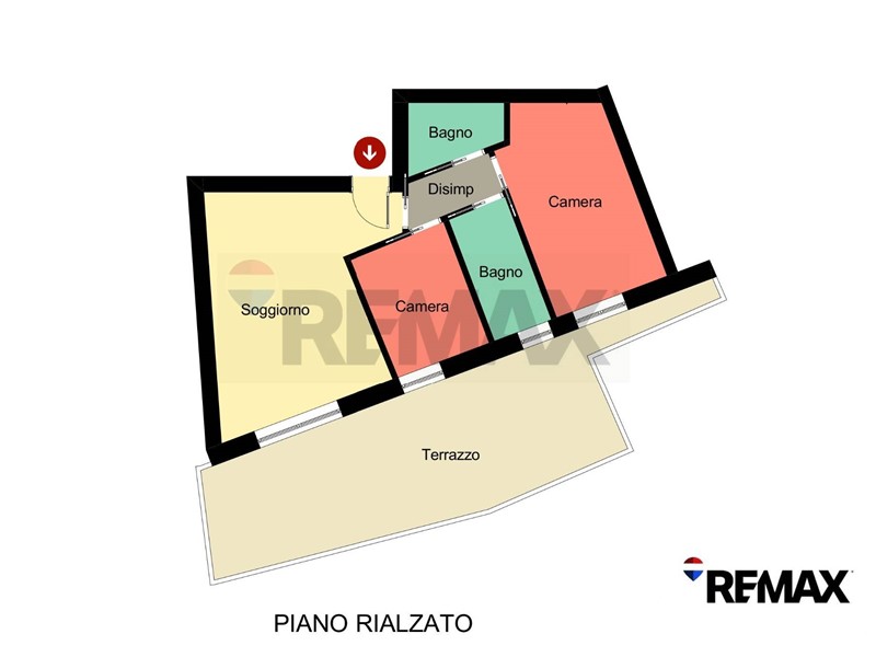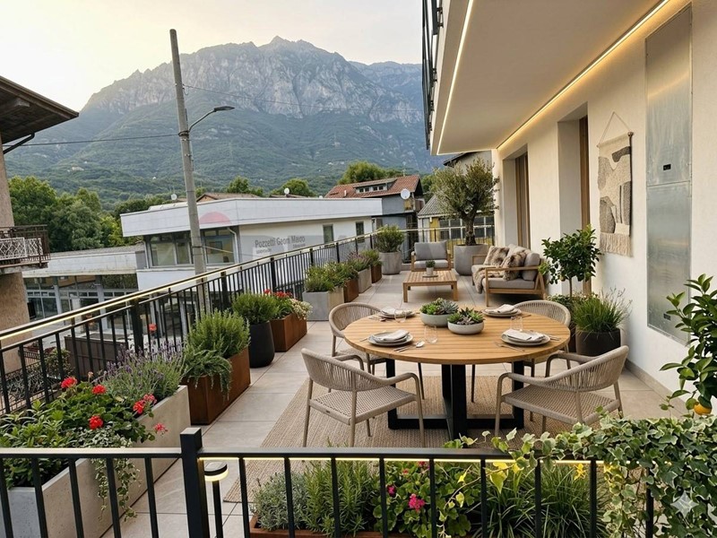 Lappartamento si trova al piano rialzato ed è ben organizzato: zona giorno accogliente, camera da letto matrimoniale e singola, doppi servizi e un terrazzo di 45 m² che lo rende davvero particolare.