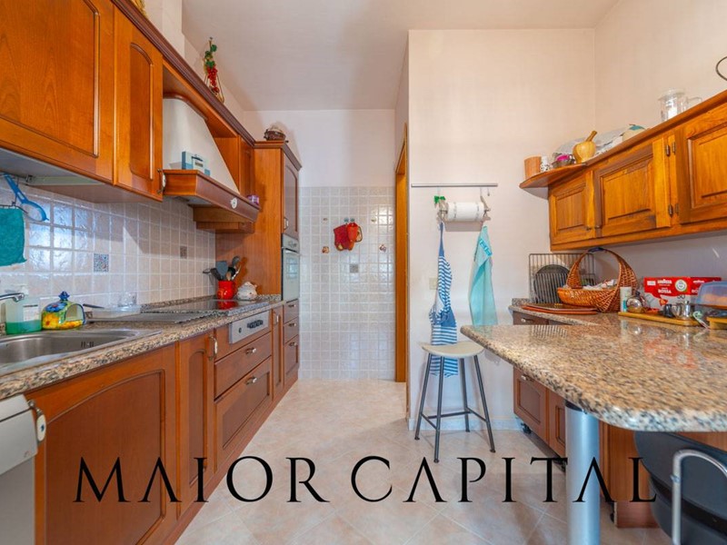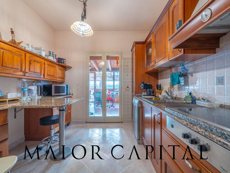 La cucina, separata e abitabile, è collegata direttamente alla veranda e offre la possibilità di essere facilmente riconvertita in unulteriore stanza, come cameretta o studio.