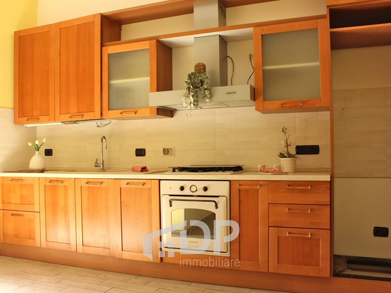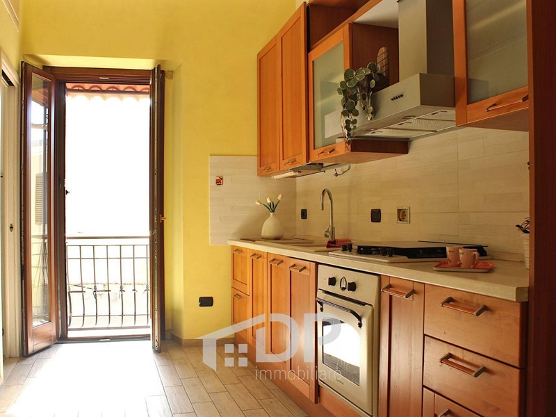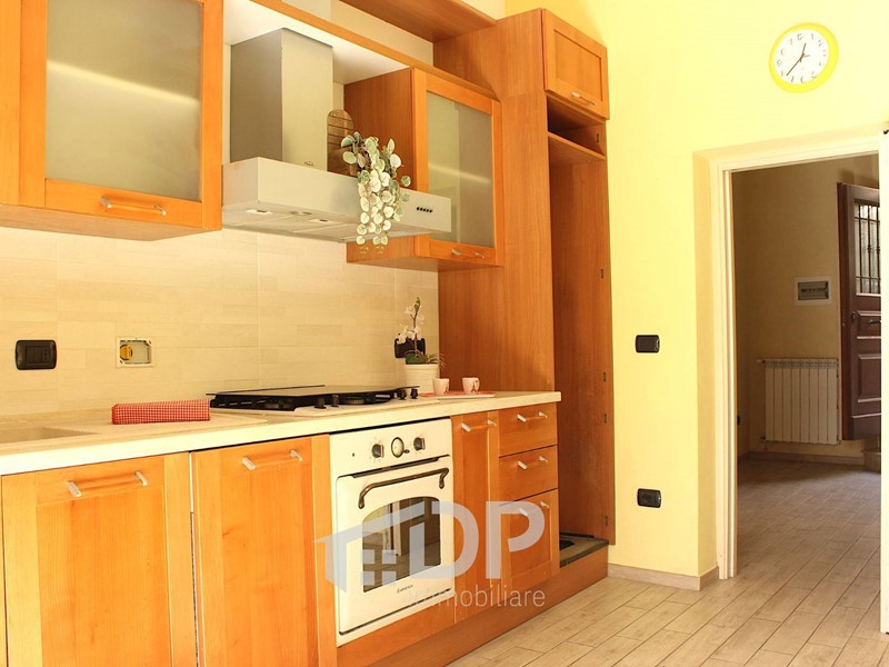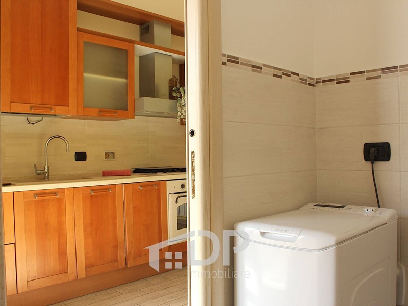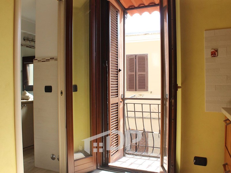 Appena entrati si accede ad un piccolo soggiorno e da questo, a sinistra, alla camera da letto (con letto e armadio a ponte), mentre di fronte si apre la cucina abitabile, arredata ed equipaggiata. Il bagno è dotato di doccia e ha il posto per la lavatrice. Il balcone affaccia sul tratto sottostante di via Fiume, esposto a sud-est.
