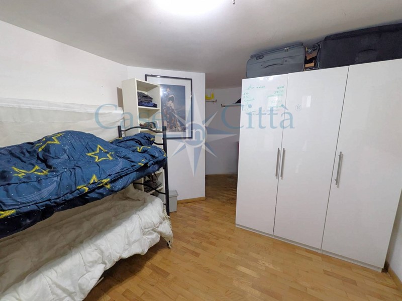 Limmobile si compone di ingresso su soggiorno con cucina a vista e ampio balcone, disimpegno, camera matrimoniale e bagno. Una scala interna conduce a una stanza al piano terra, accatastata come cantina ma attualmente utilizzata come cameretta per i figli, completa di secondo bagno e con accesso a un piccolo giardino di proprietà, offrendo uno spazio funzionale e indipendente per bambini o ragazzi.