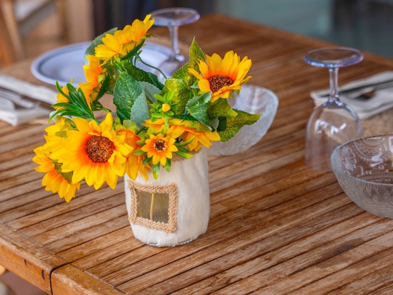 Qui siamo pronti per prepararci un thé caldo in autunno o sorseggiare una bibita fresca in primavera nel nostro comodo angolo cottura completo.