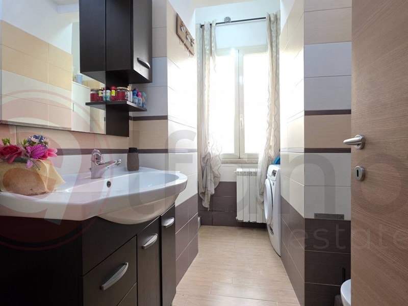 Internamente viene lasciato parzialmente arredato, completo di cucina e servizio. La recente ristrutturazione, ultimata nel 2017, permette di poter disporre dell'abitazione nell'immediato, nello specifico troviamo i pavimenti in grès effetto parquet, infissi a doppio vetro insonorizzati con zanzariere, portone blindato, impianto di allarme predisposto con sensori su finestre e persiane.