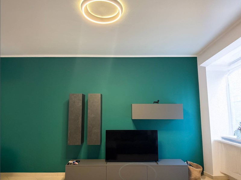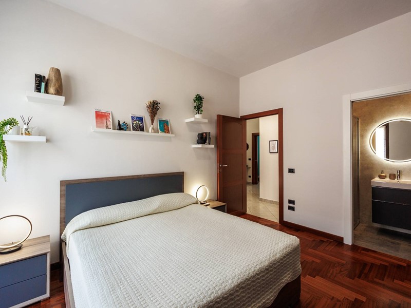 L'appartamento è composto da ingresso, ampio soggiorno con cucina a vista, due camere da letto di cui la padronale con il bagno en suite, bagno e rispostiglio. Completa la proprietà una cantina.